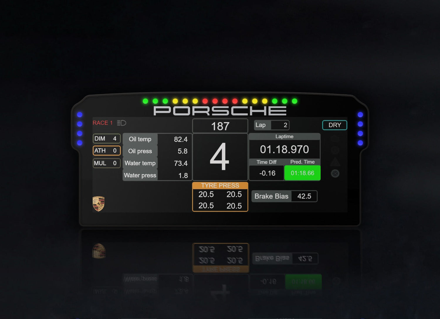 The display works with the well-known SimHub software, making it customizable for every PC-based racing sim. Use this display in Assetto Corsa, iRacing, rFactor2, Assetto Corsa Competizione and more. This display unit is connected via 3 cables at the bottom right of the casing. HDMI, a power lead and a USB cable are needed to operate it.